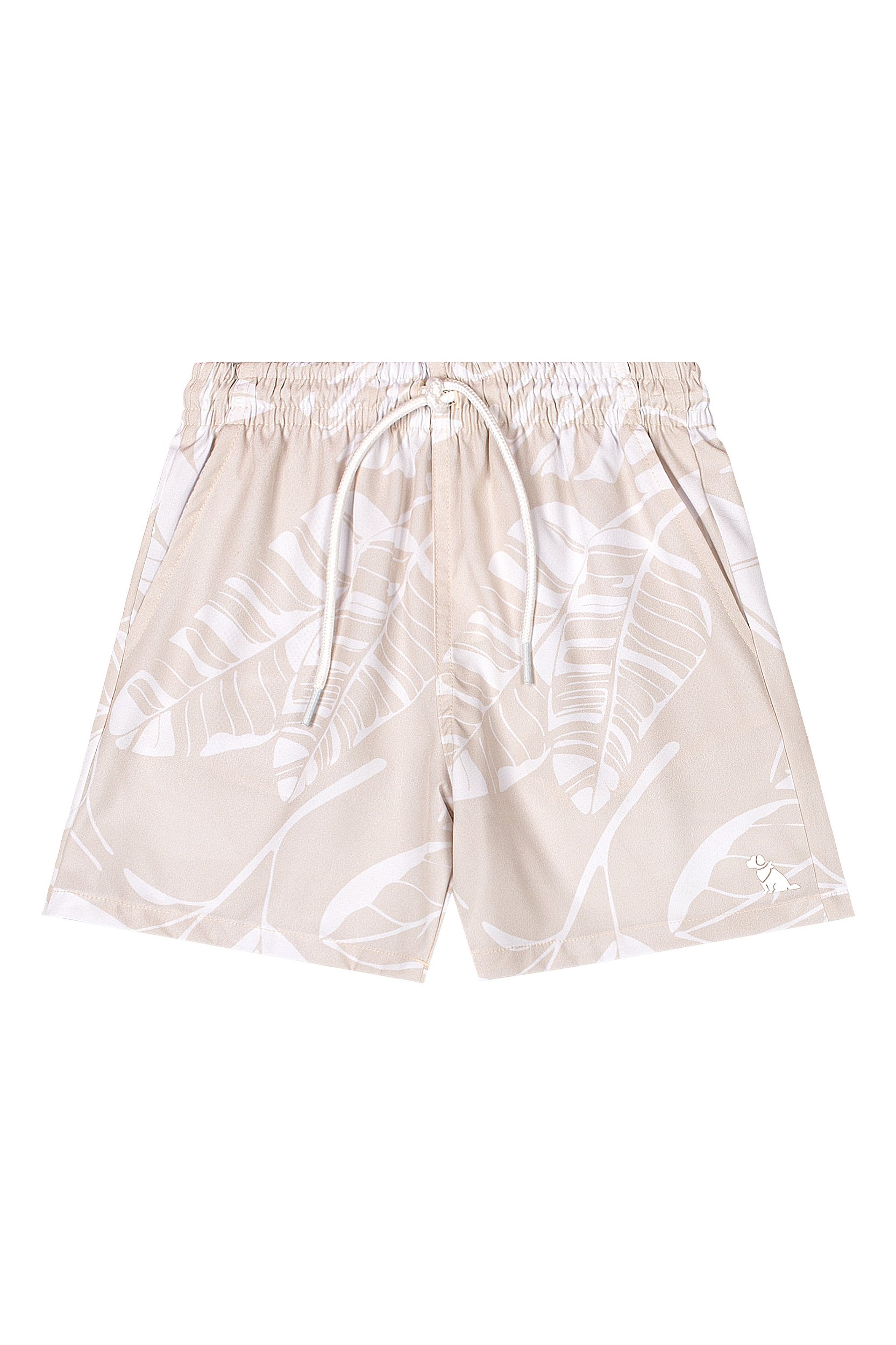 Com visual tropical e toque leve, esta bermuda boxer infantil é confeccionada em microfibra com elastano e estampa sublimada de folhagens.