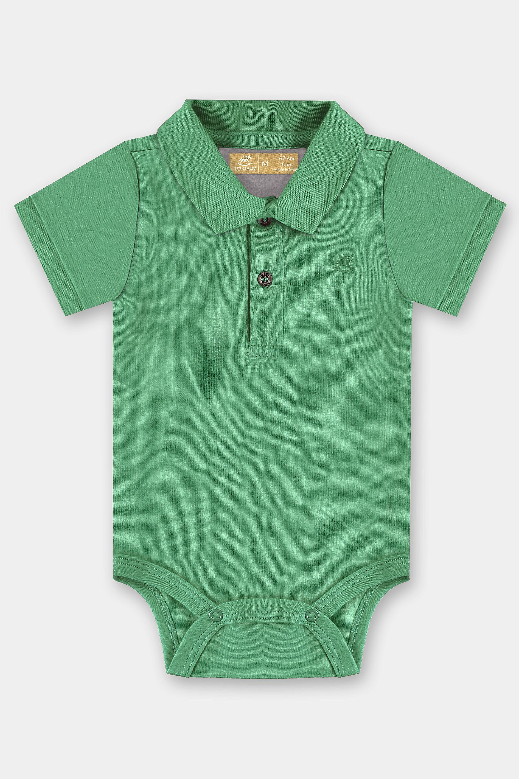 Body polo para bebê menino, confeccionado em malha suedine, proporcionando conforto e toque macio para a pele delicada dos pequenos.