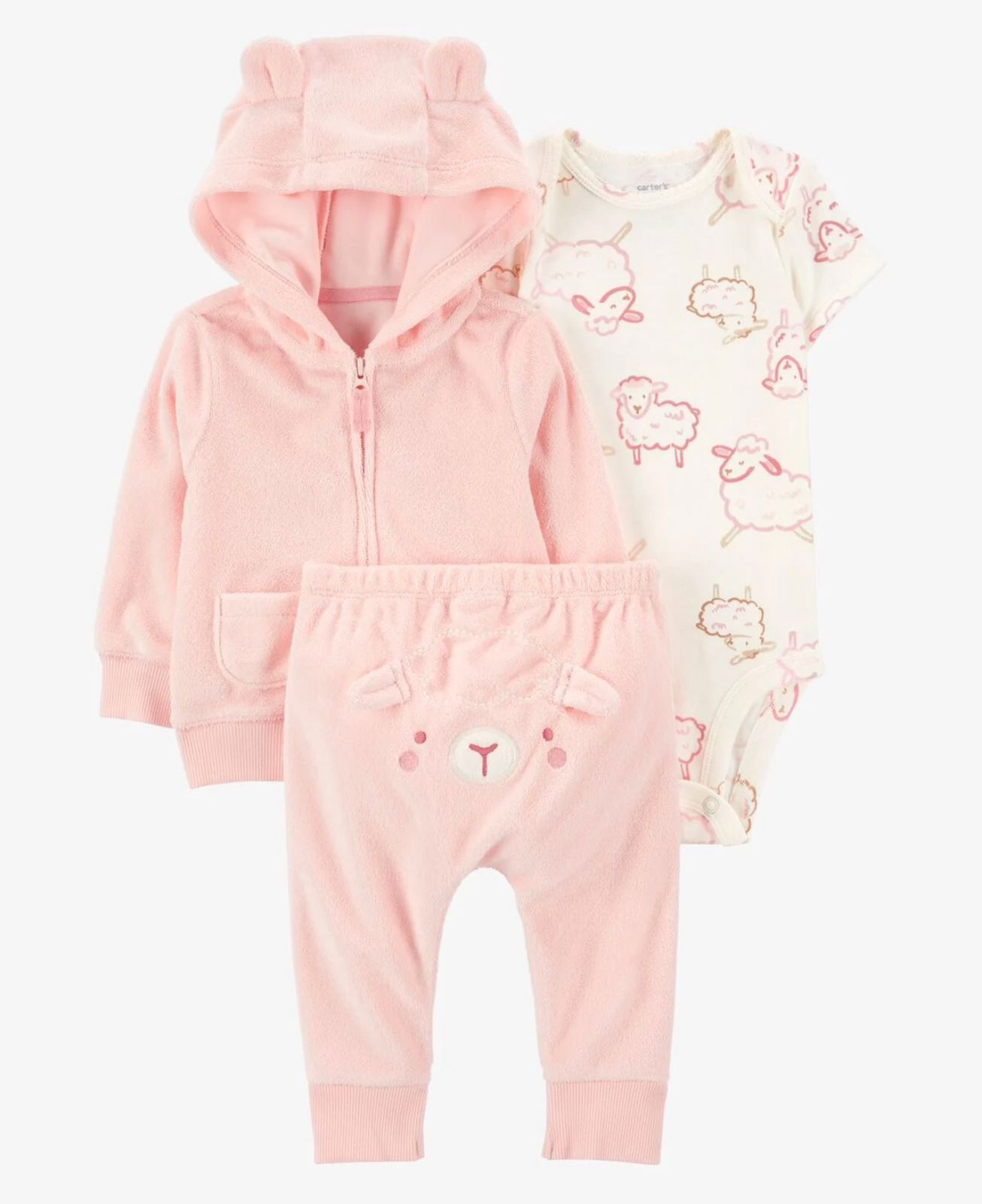 Conjunto 3 peças Cardigan Ovelhinha Rosa - 9m (6 a 9 meses) - Carter's