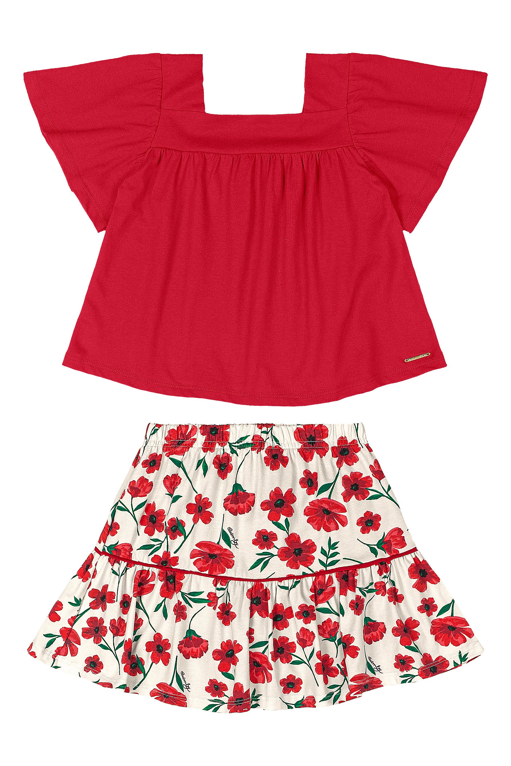 Para completar, a saia floral em cotton (Algodão com elastano) combina estampa alegre com caimento confortável, além de contar com short interno em meia malha (Algodão) que garante segurança e liberdade total para as pequenas se divertirem sem preocupações.