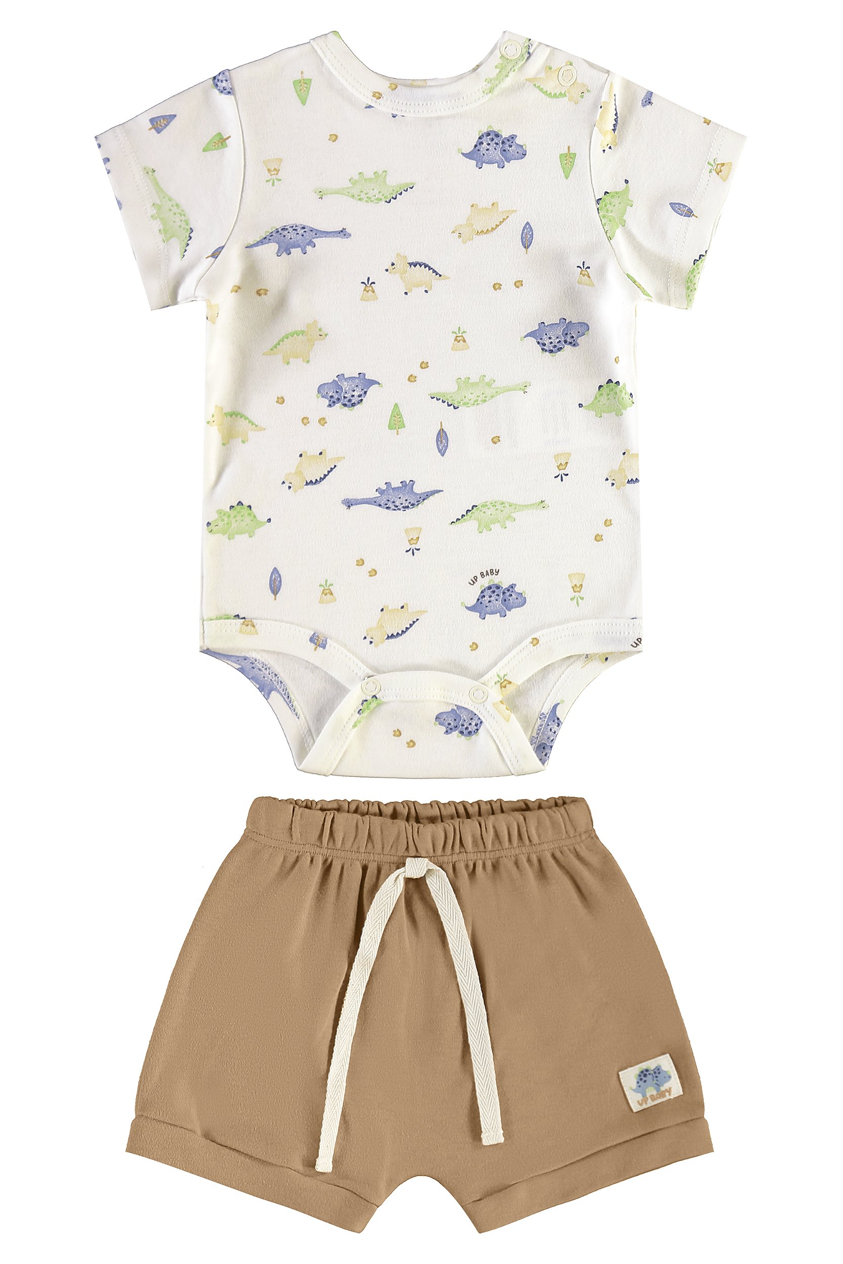 Conjunto Body Branco Dino Short Bege - Tam P - Up Baby
