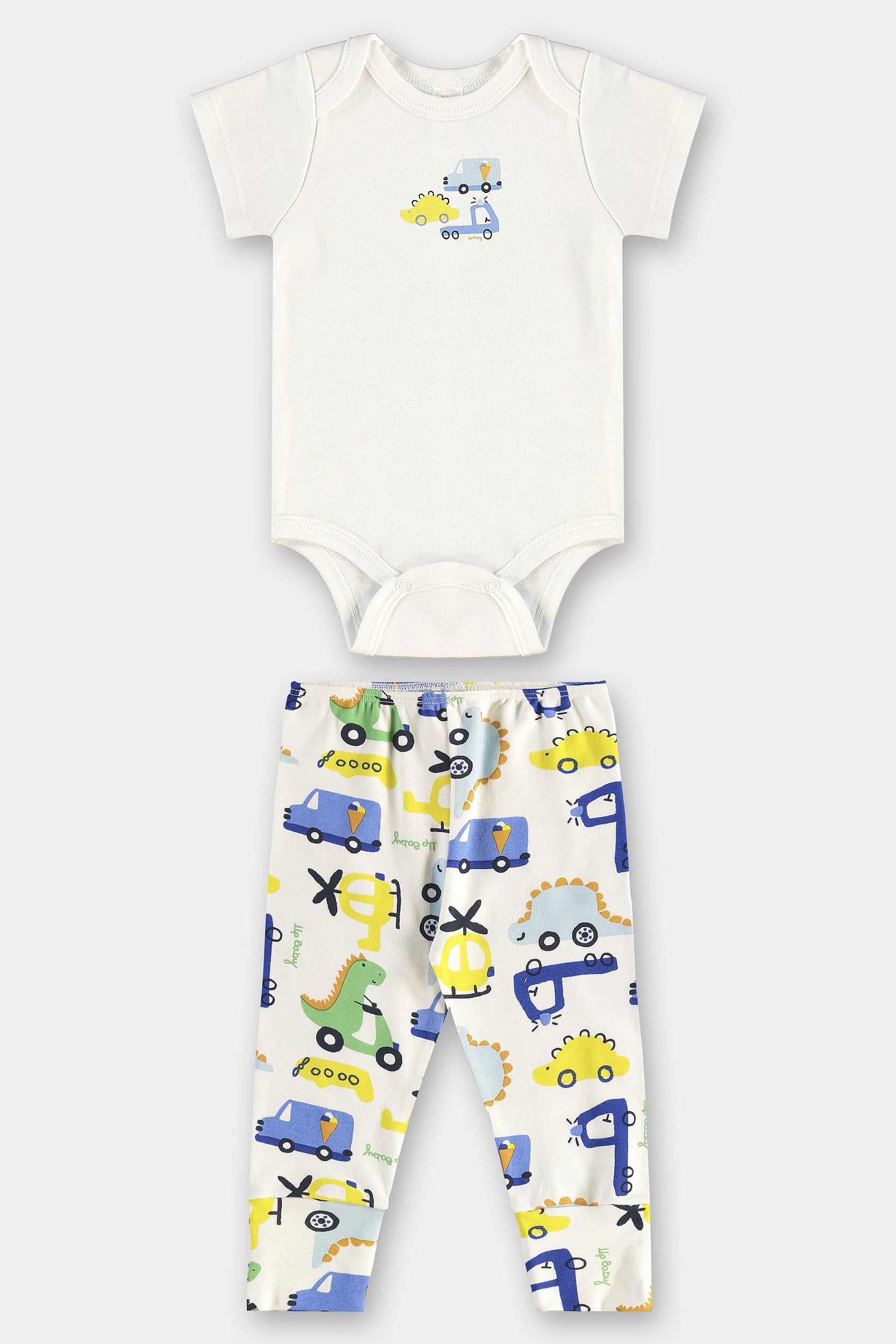 Conjunto menino bebê em suedine, conforto e maciez garantido. O body conta com manga curta, costura reforçada e abertura por botões de pressão facilitando o dia a dia para vestir e trocar, além da estampa suave e fofa centralizada oferecendo um toque delicado para a peça. Já a calça possui elástico na cintura e punhos reforçados. A estampa rotativa ganha destaque por suas cores vibrantes proporcionando um toque divertido e criativo. Look perfeito para todas as ocasiões com frescor e bem-estar.