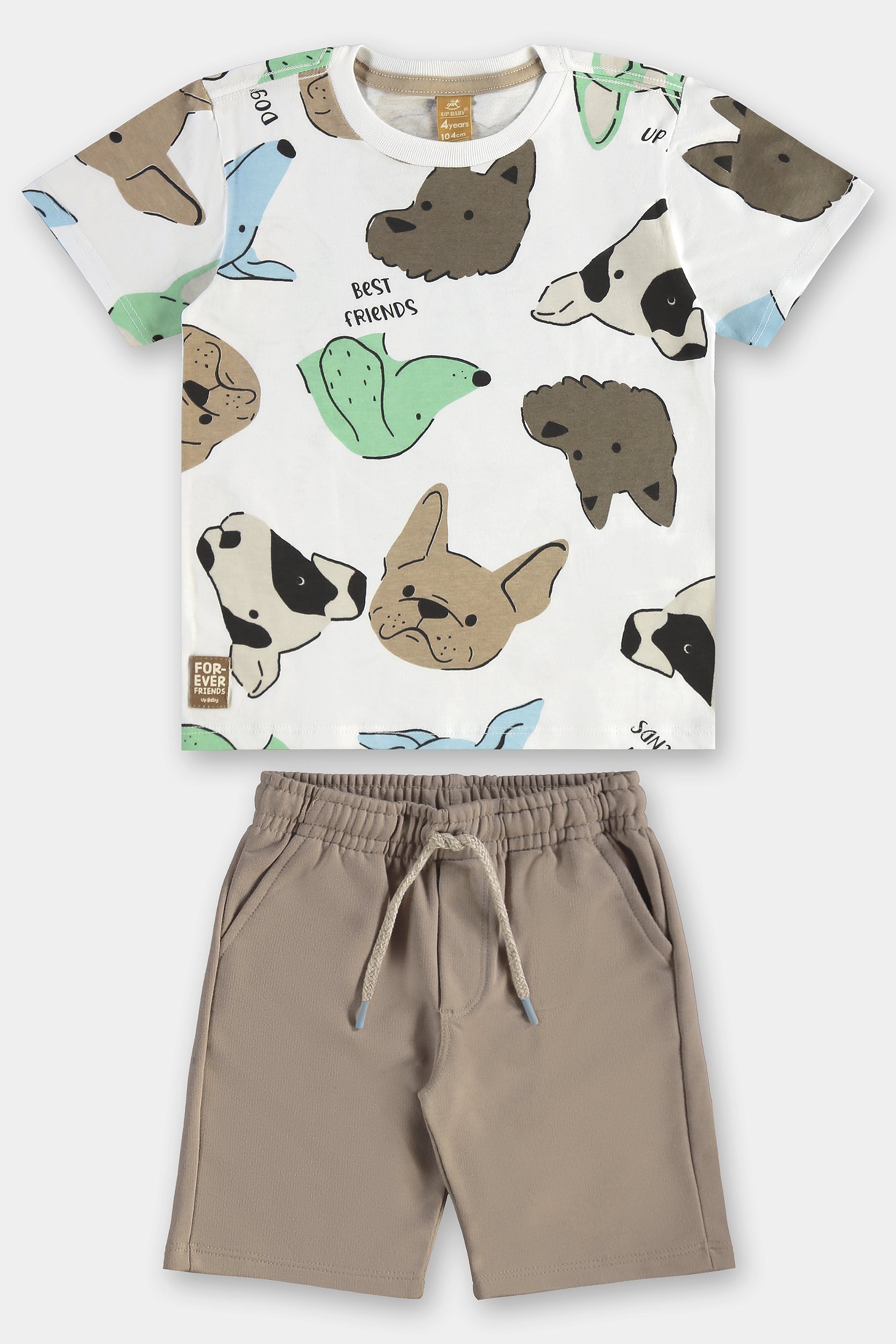 Conjunto Infantil com Camiseta Estampada e Bermuda (Branco) Up Baby