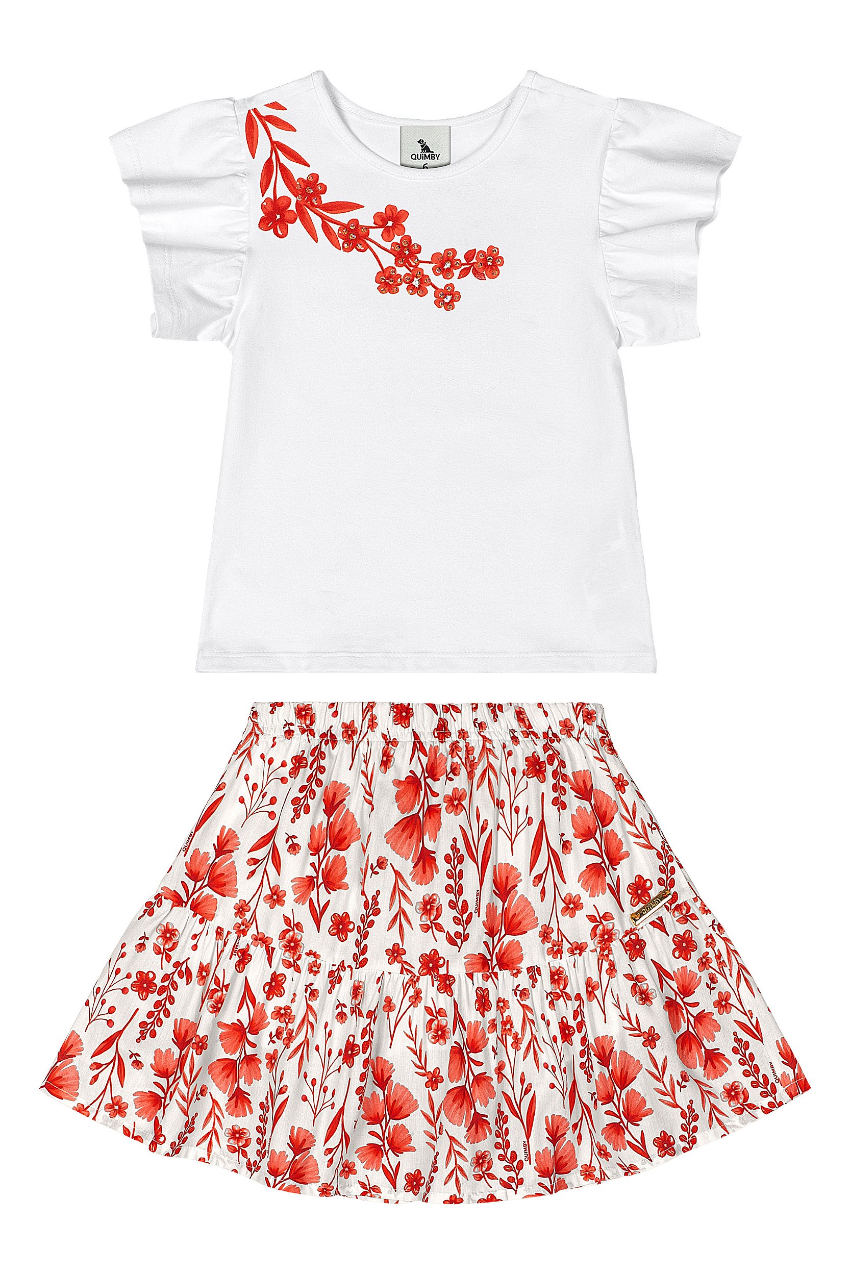 Conjunto Saia Floral Vermelho - Tam 6 - Quimby