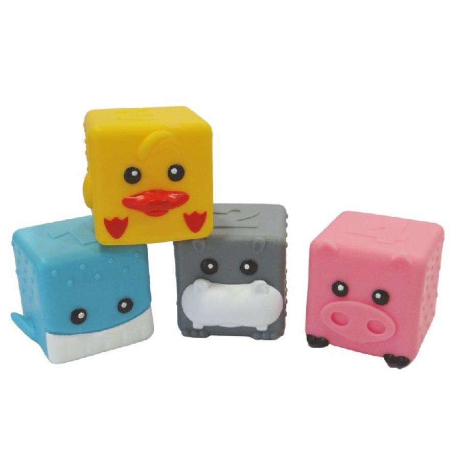 Cubinhos divertidos com animais e números de 1 a 4.