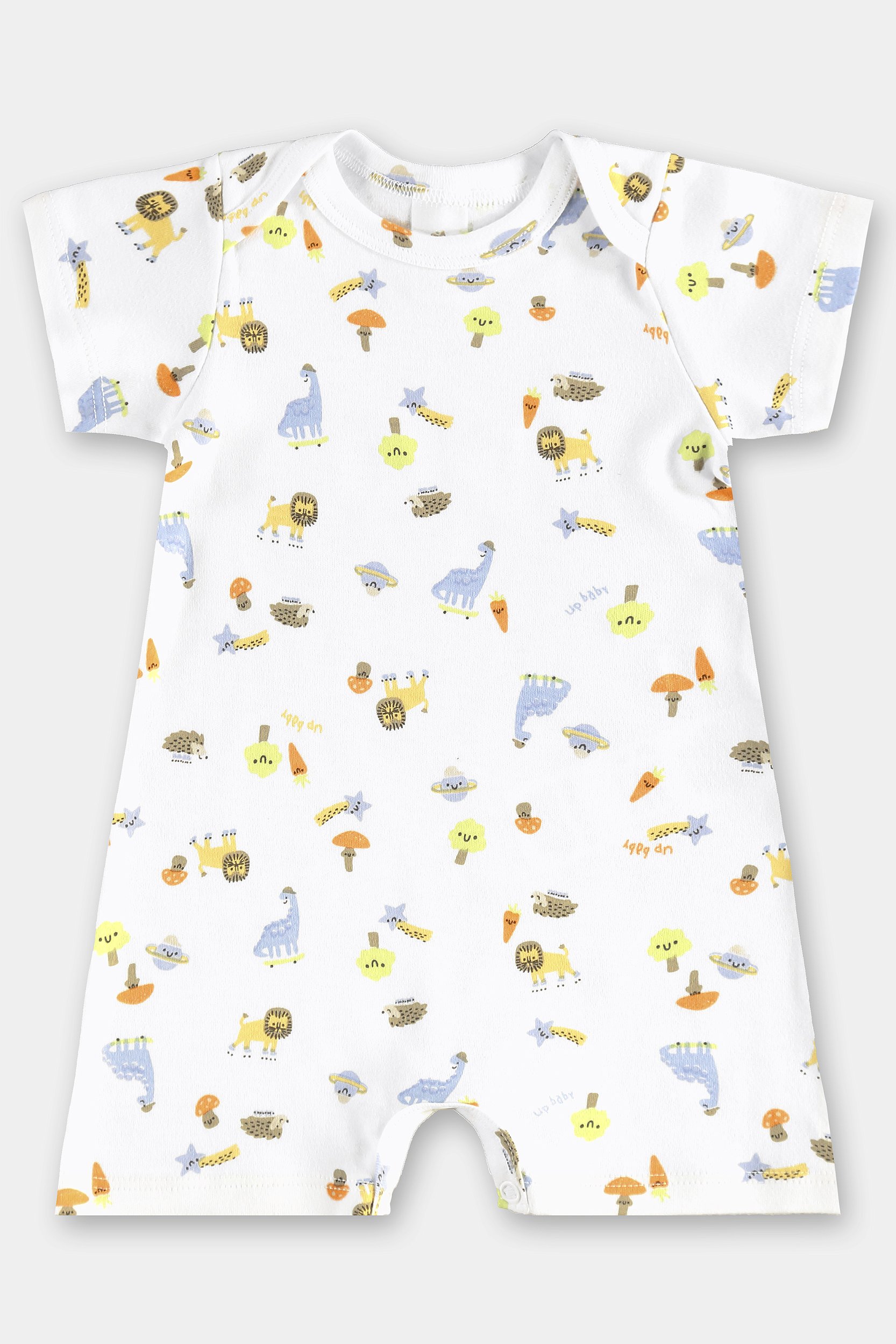 Macaquinho para bebê menino, confeccionado em suedine de algodão macio e respirável, ideal para os dias quentes. O modelo possui uma versátil estampa abstrata com variedade de cores, perfeita para todas as ocasiões. Pensado para a praticidade dos papais, conta com costura reforçada e uma prática abertura com botões de pressão entre as pernas, facilitando o vestir e as trocas no dia a dia e garantindo o conforto do seu pequeno.
