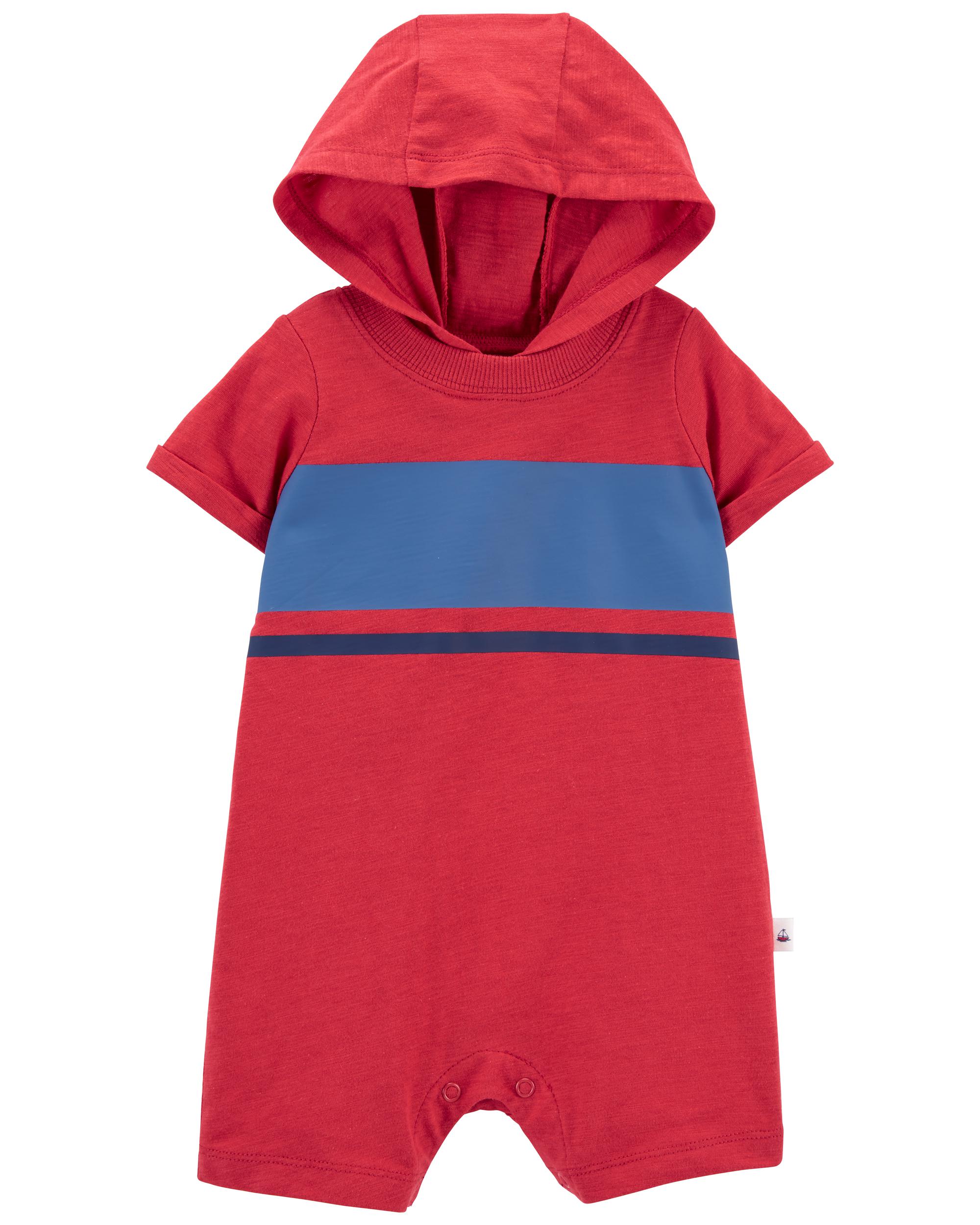 O modelo confeccionado em algodão, conta com capuz embutido, mangas curtas e abotoamento entrepernas permite mudanças rápidas e é fácil de vestir. Combine com uma papete, para um look passeio.