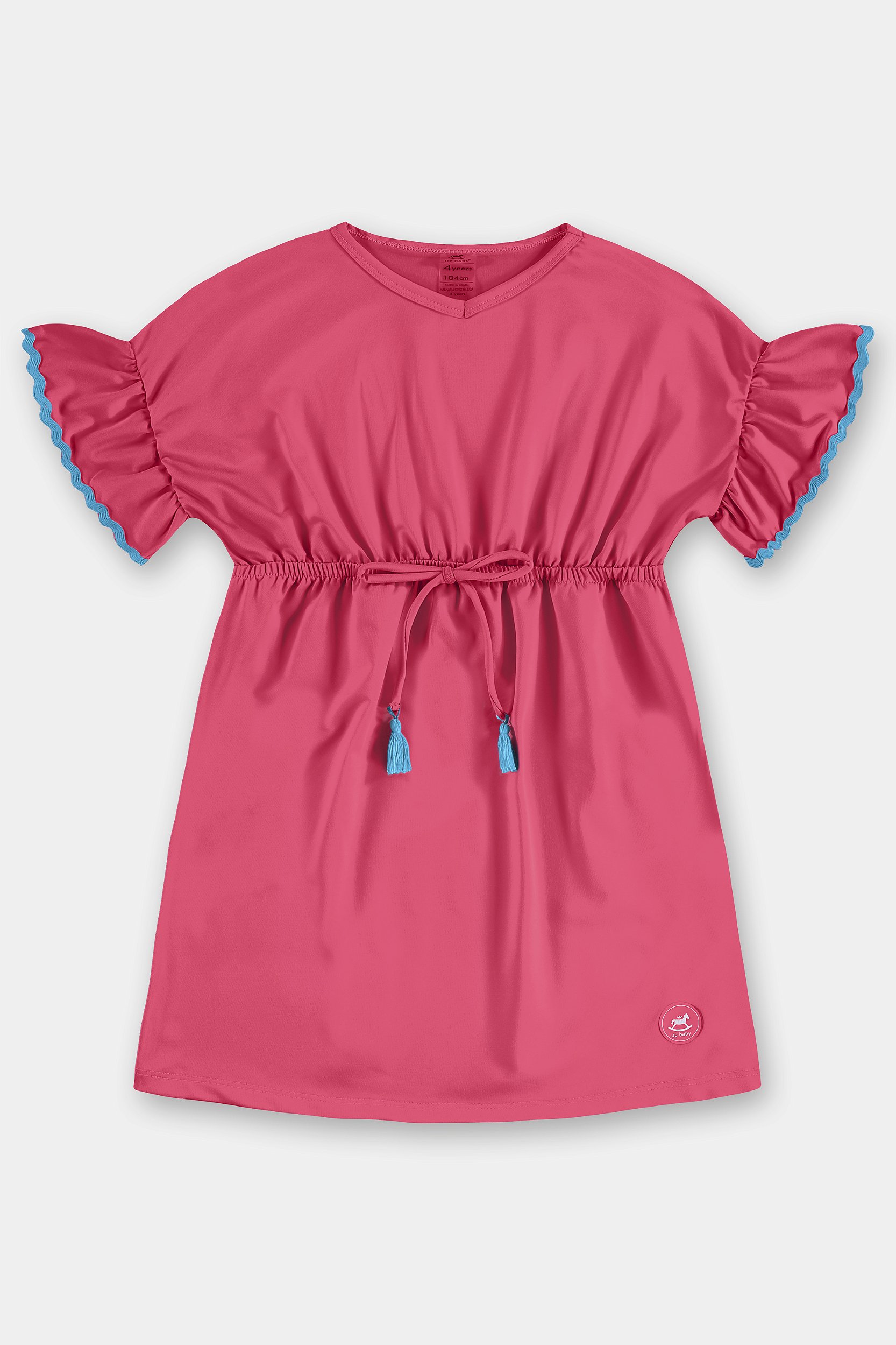 Saída de praia infantil confeccionada em malha com proteção solar FPS +50, garantindo conforto e segurança nos dias de sol.