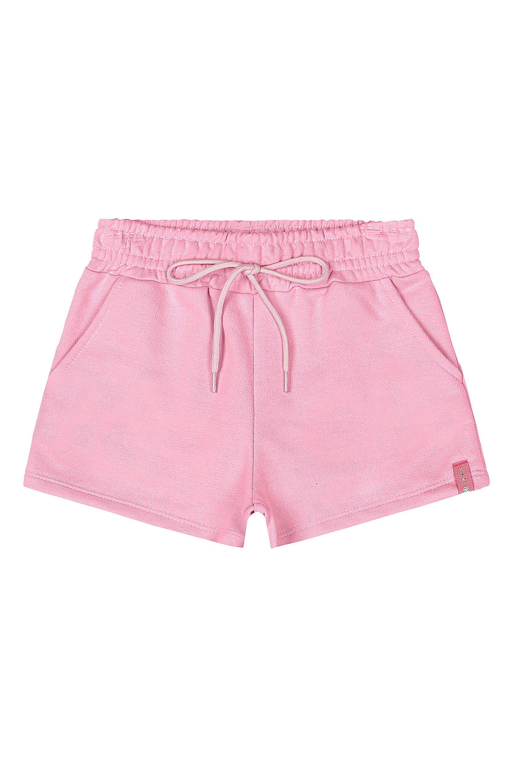 Shorts infantil feminino confeccionado em moletom sem felpa, proporcionando ajuste perfeito e conforto ao vestir. Possui bolsos funcionais, cadarço decorativo e cós com elástico, que garante praticidade no dia a dia.